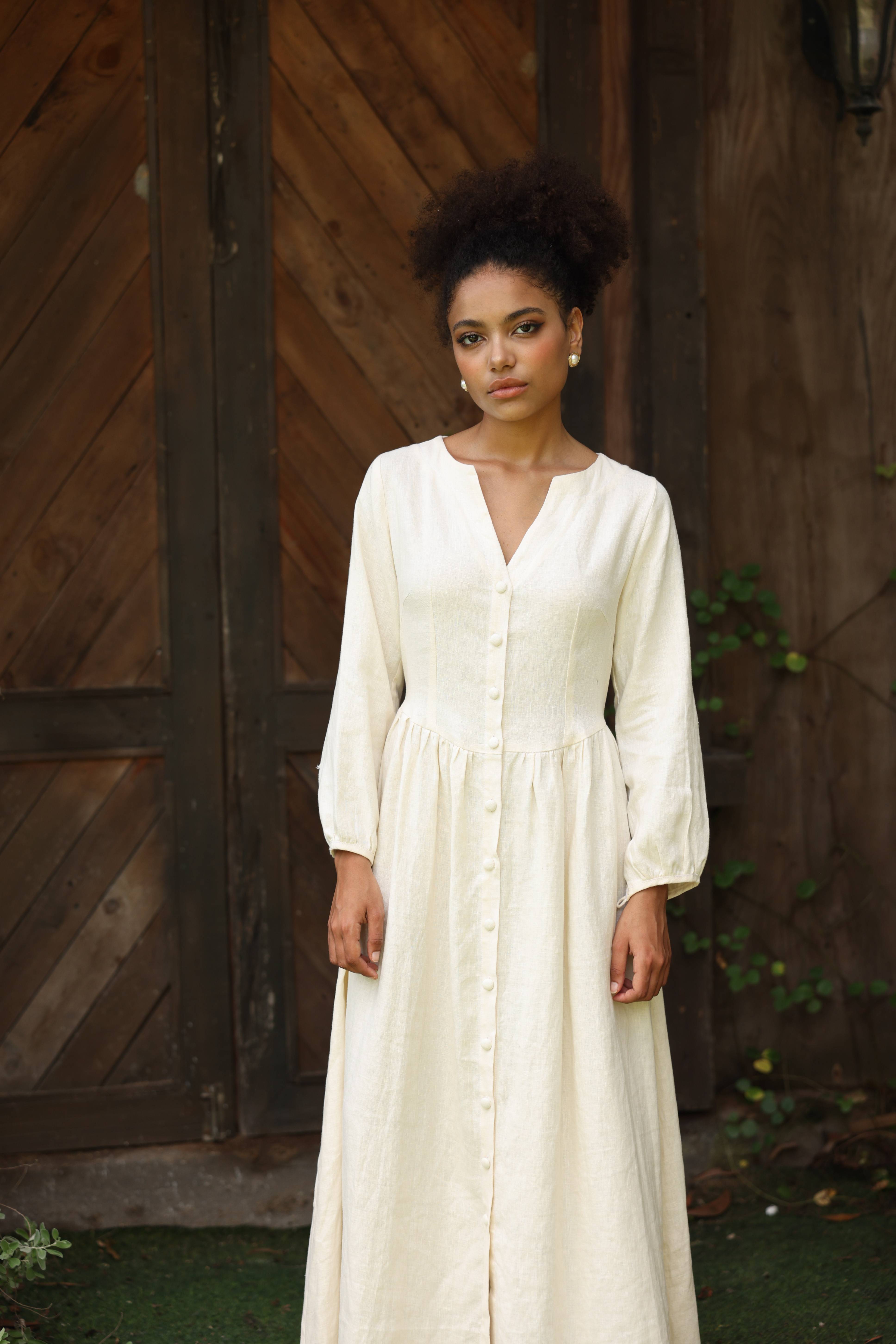 Elegant and timeless, the A-line linen maxi dress brings effortless charm to any occasion.
