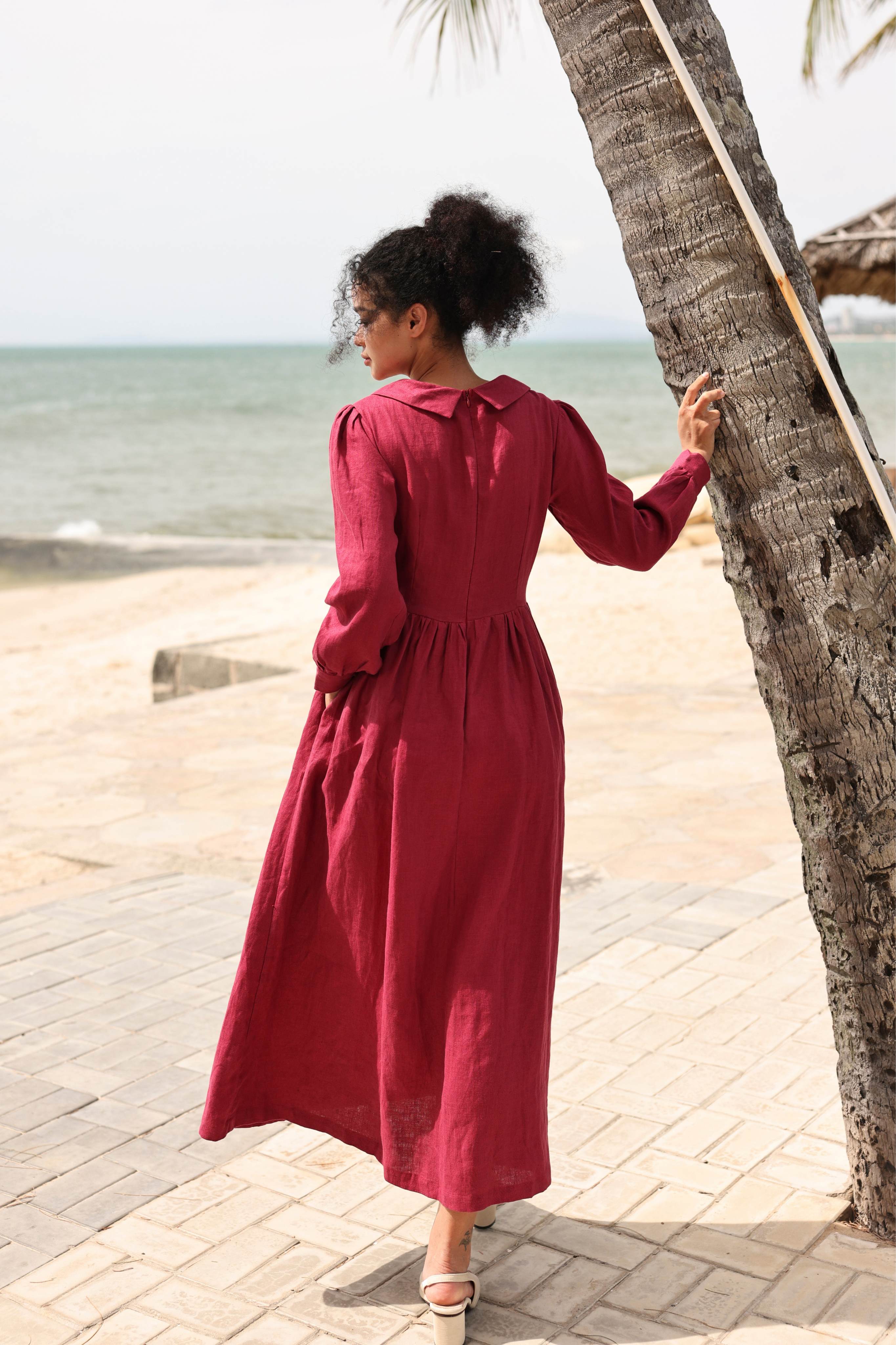 Bring timeless charm to your wardrobe with this linen dress with Peter Pan collar.