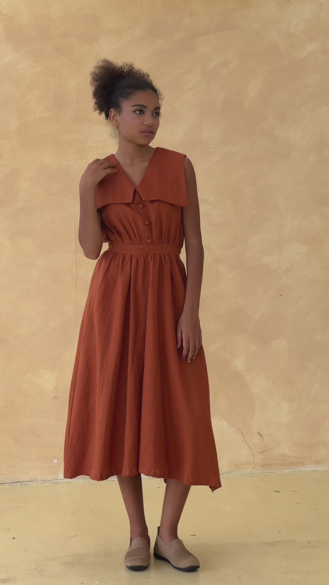 The sailor collar linen dress combines nautical charm with airy comfort for timeless everyday style.